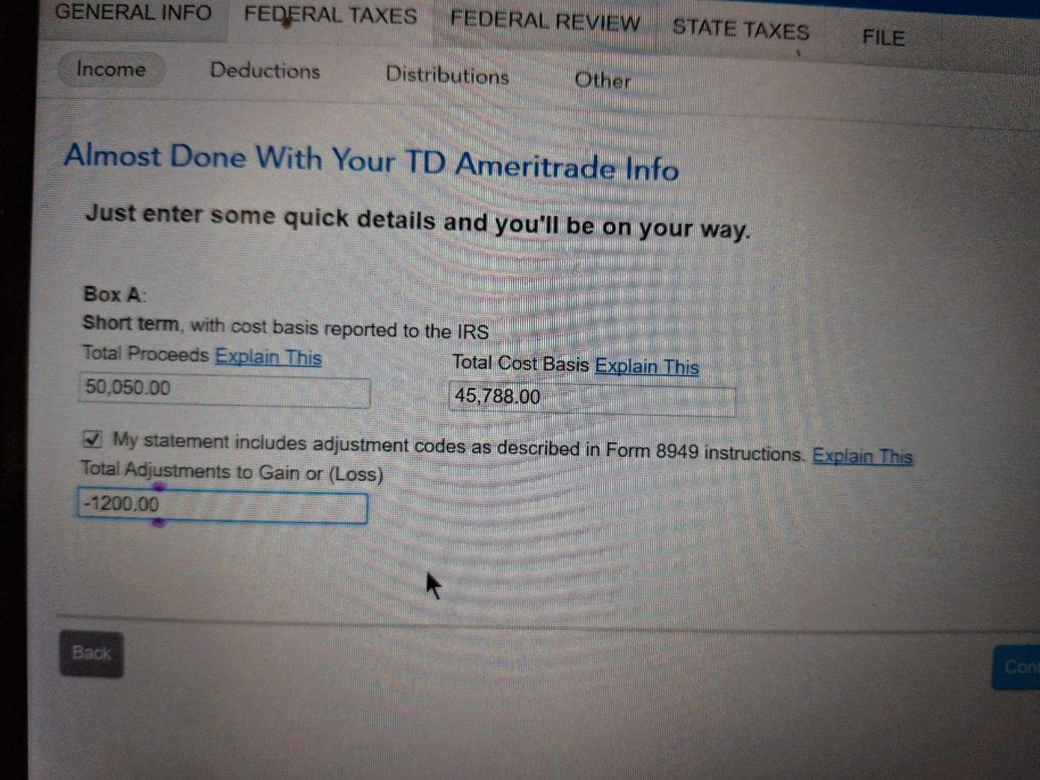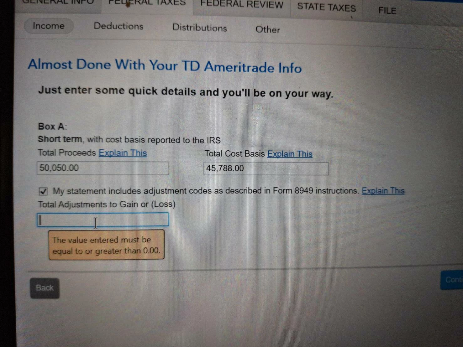 I'm trying to enter market discount for form 8949 in 1041 trust filing. According to Turbo tax business, i should be able to enter a negative number, so the loss will reduced from the gain.