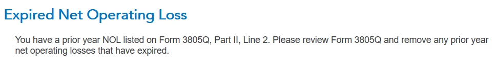TurboTax says to check if my 2017 NOL is expired