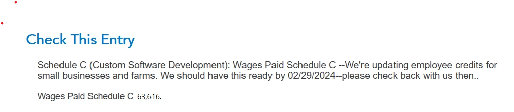 "Schedule c (insurance) wages paid schedule c - we're updating employee credits for small businesses and farms. we should have this ready by 02/25/2024-please check back with us then."
