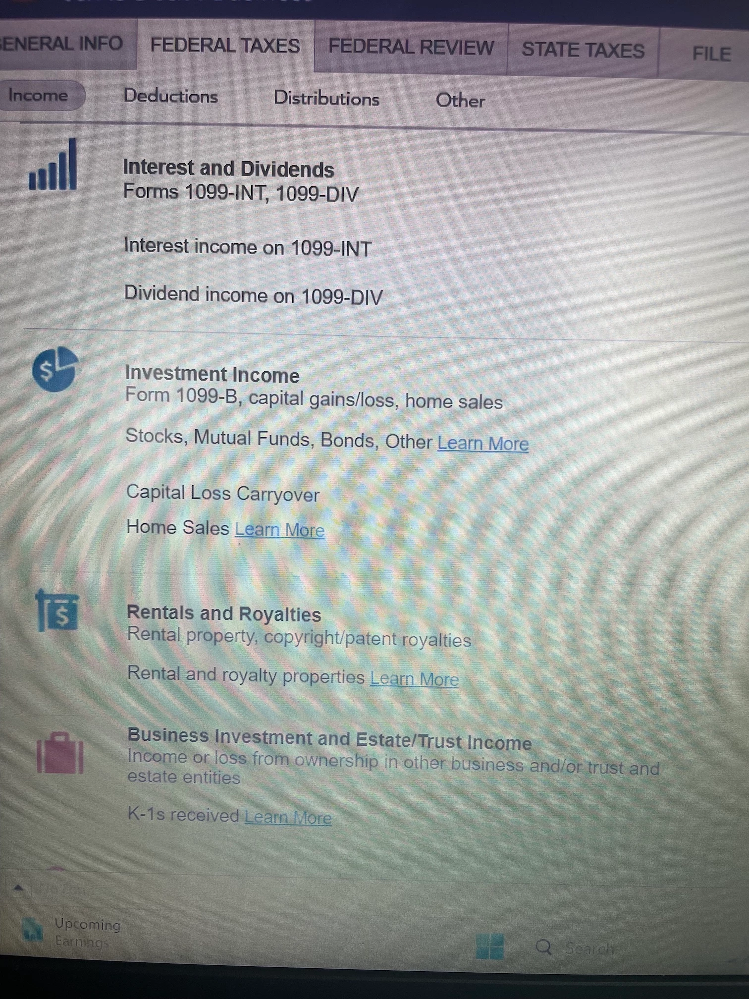 My Desktop version doesn't have Allocation of Capital Gains (Loss) as the screenshots shown under the Income section. Also there is no accounting option for me to allocate the capital gains as income.
