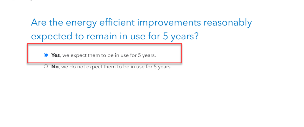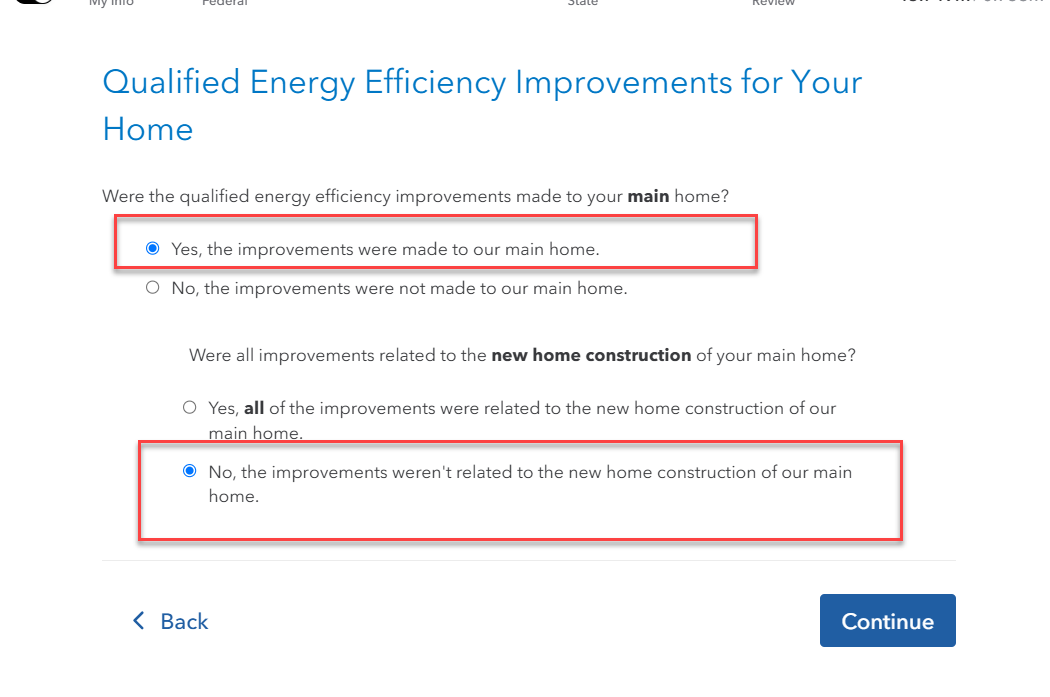 4. On the Energy Efficient Home Improvements screen, select Yes then Continue.