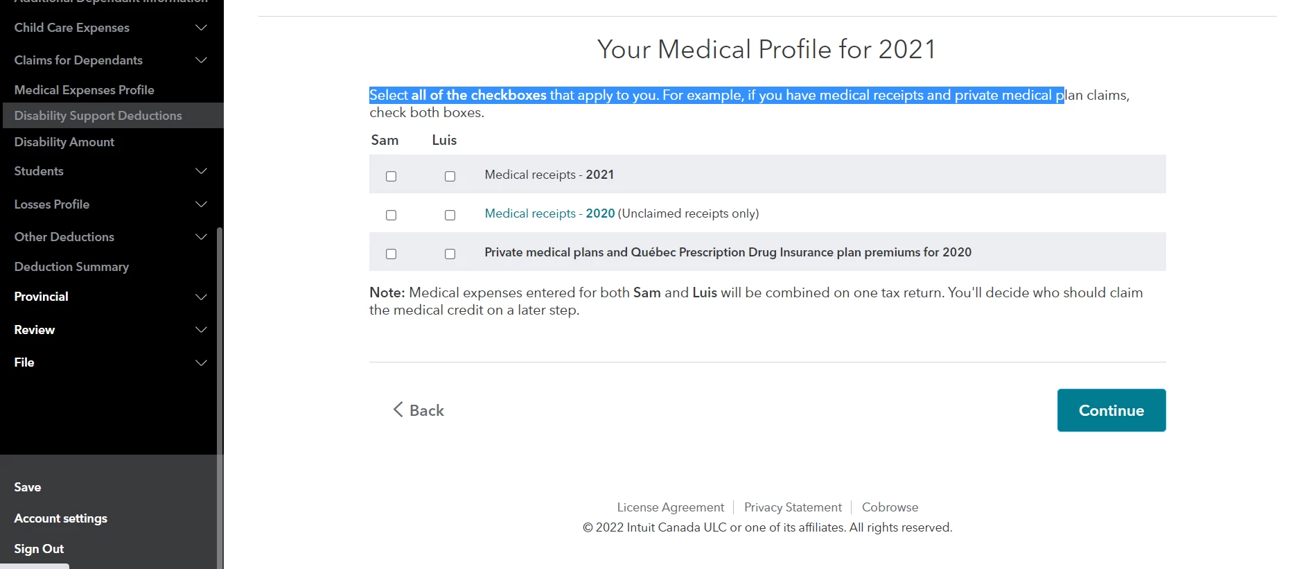 I’m in medical expenses. Where do I log out