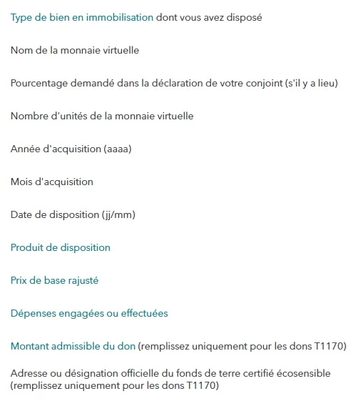 Est-ce bien dans le formulaire "Gains en capital" et sélectionner "Cryptoactifs: Cryptomonnaie" à "Type de bien en immobilisation dont vous avez disposé"?