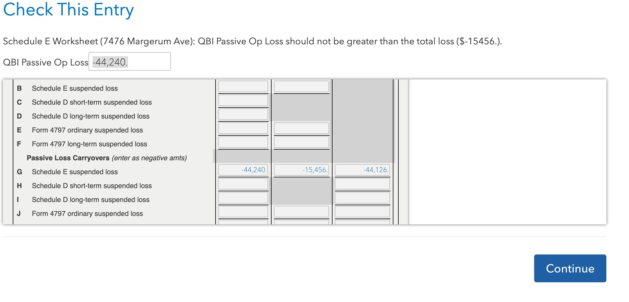 Rental Property: "Enter Nondeductible Expenses from Prior Year"