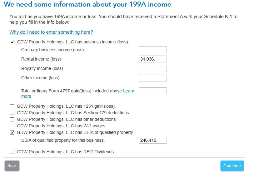Since TT does not allow me to have a z with no value on the form, I need to omit on the form to avoid a TT error. I do have the section 199a information and can enter it on the form in the appropriate place for it.
