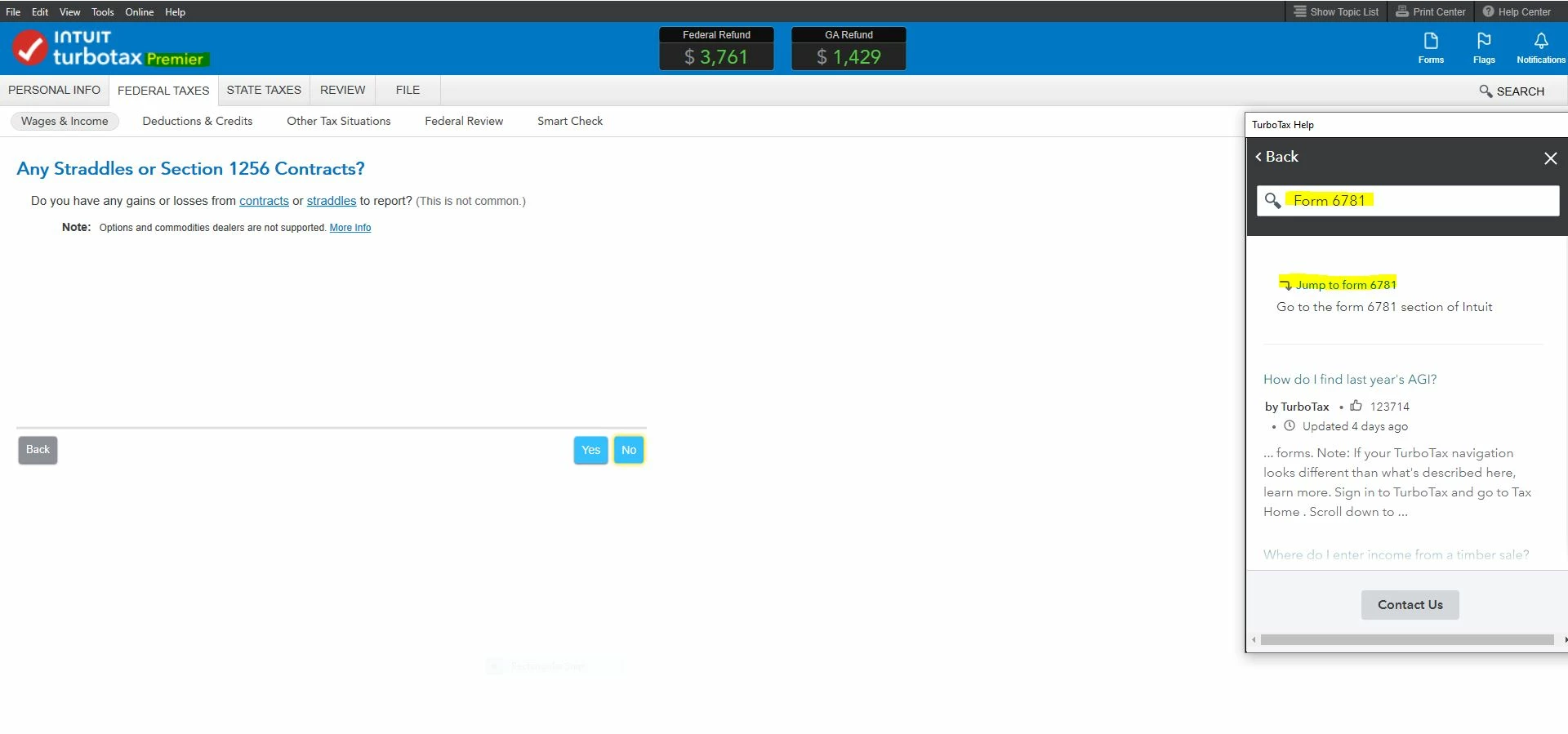i have the premier version and i cannot find Form 6781.  Could you tell me how to get to it?  Cannot find it using  Search.