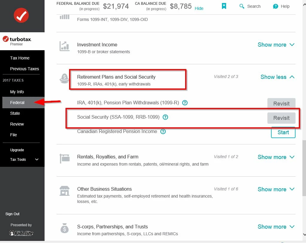 Where do I put the info for my 1099 from social security